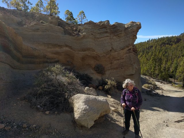 After a couple of hours of hard walking we finally got to Paisaje Lunor. I took a panorama of the scene which you’ll need to see blown up on your iPad to see properly. On the left and right hand side of the photo you should be able to see some very strange rock formations. They were made some 500,000 years ago when the big volcano on the island exploded and sent lots of really hot rocks flying into the air followed by molten lava pouring down on top of them. As the years went by, water and winds got rid of the softer rocks leaving these strange formations behind.