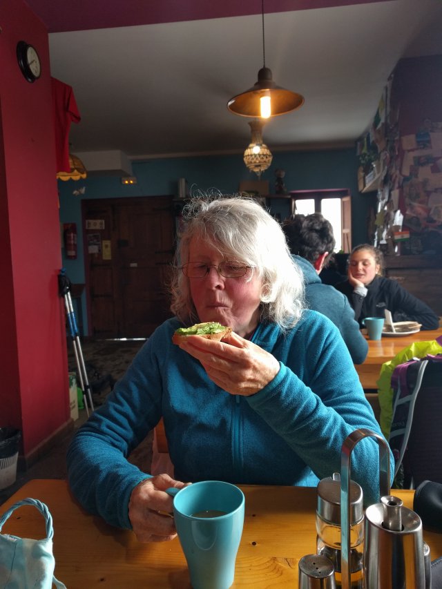 We stopped relatively infrequently. We had a long way to go, a little under 34km as it turned out but a late breakfast of muesli followed by avocado on toast was very pleasant.