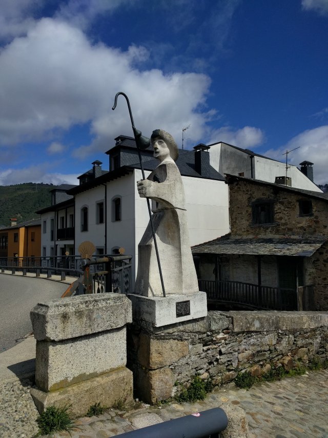 This is Ponferrada first thing in the morning. Not a soul in sight. The hotel was pleasant but a little sad. The chap running it, early twenties, did everything from taking our money to stay, organising our washing, dinner and then providing breakfast at 7:30 this morning. We see quite a few peregrinos as we walk but I suspect that the real influx won’t start for a few weeks yet. The hostels and albergues en route clearly need the peregrinos to survive and if we’re the only ones staying it’s going to be tough financially π.