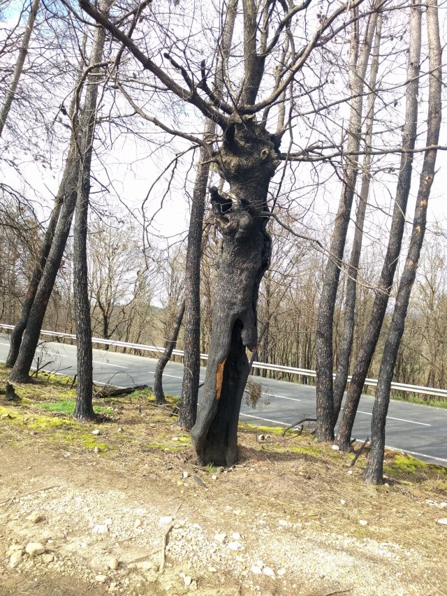On the way we passed through a small forest of burned trees, very sad and dispiriting.