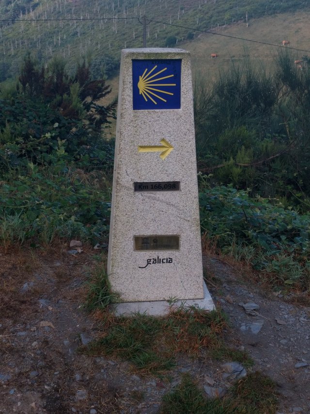 The walking passed quickly today. Lots of undulations and one steep climb up to some very impressive windmills saw us leave Asturias and enter Galicia.
