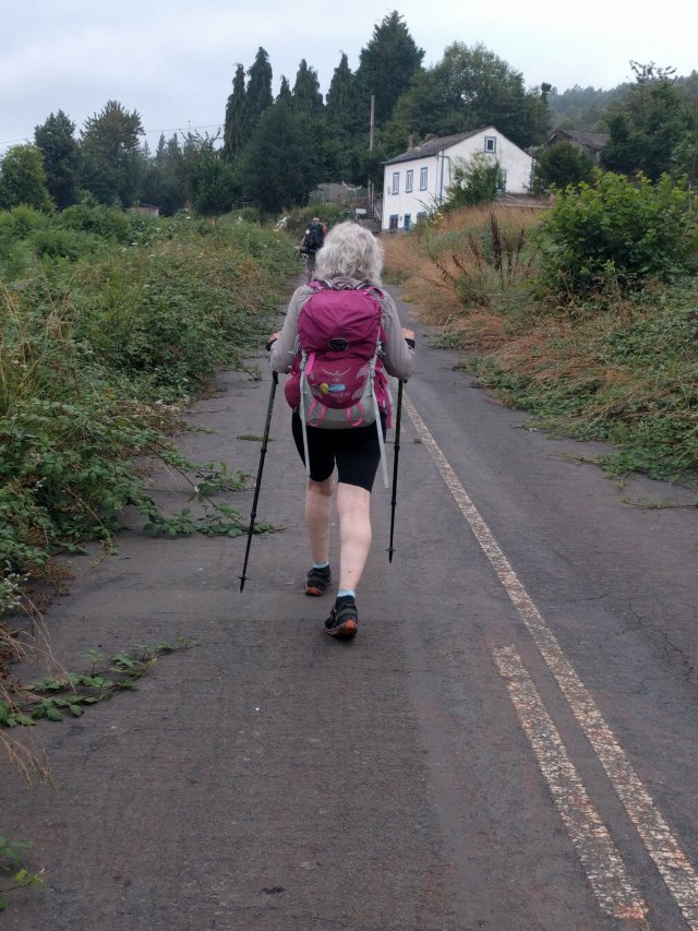Rodolfo slept in the hotel because the albergue was full with 8 or so pilgrims having to sleep in a large tent in the field alongside. We saw the results of that this morning as what seemed to be a horde of cheerful pilgrims made their way in front of and behind us as we climbed steeply away from the sleeping village.