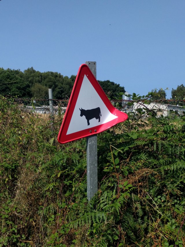 The last photo shows companion planting at it’s best; runner beans making their way up maize plants. Also note how the traffic signs of cows here in Spain have horns and a full set of udders π.