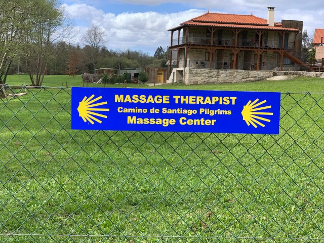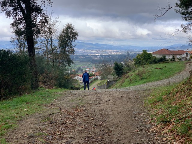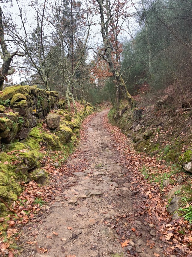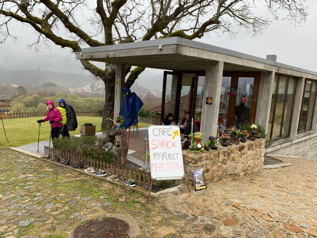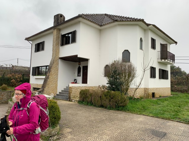 We stopped for quite some time at a delightful cafe/albergue that was temporarily being run by a young French couple. They had walked the Camino Frances from near Limoges with a donkey to carry their tent etc. They’d made it to Santiago and were now heading south towards the algarve where they were meeting up with some friends with the intention of buying some land together. (No chance for British kids to do this after Brexit). They’d stopped at the albergue and had applied to look after it for the Canadian owners whilst they were out of the country. We had a superb breakfast of muesli with Greek yoghurt, a rich brownie, freshly squeezed orange juice from their orchard and a cracking cup of coffee. (At lunch time). We popped across to see the donkey before we left. He was brown, roughly the size of August and friendly. I’ve no idea why I didn’t take a photograph (sigh).