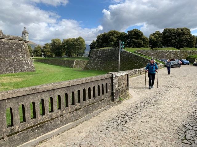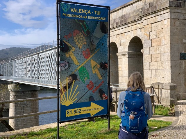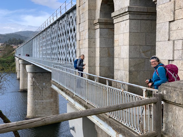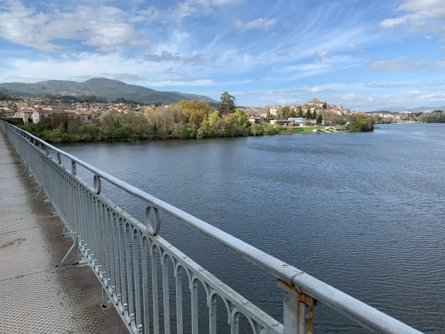 After a relatively short 21.5km, we’ve arrived in Tui the first town in Spain after leaving Portugal. The river Mino separates the two countries with Valenca on the southern bank and Tui on the northern. The two tier bridge has walkers and cars on the bottom tier, trains on the top.
