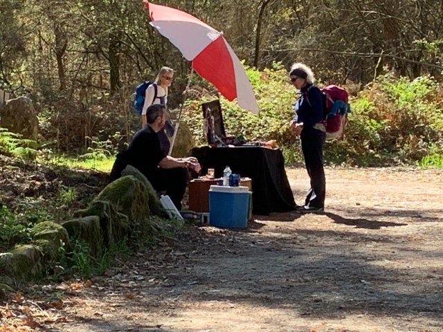 In the midst of the forest we came across a chap selling souvenirs of the Camino and who had also as recently as yesterday acquired the all important ‘sello’ or Camino stamp.