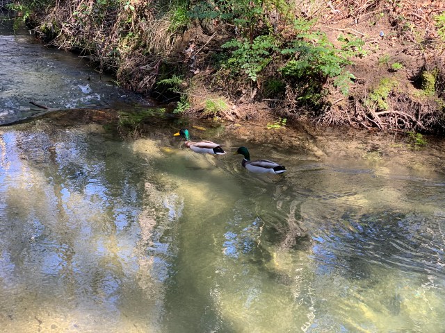 We both removed our socks and shoes but disappointingly couldn’t quite reach the surface of the river. Still, it does one good to give toes an airing (especially mine, says Dorothy) every now and again. We whiled away a good half hour watching the boatmen zipping back and forth on the surface, always hoping to see a fish of some sort appear. The water is extremely clear and apparently is sufficiently so as to attract the interest of otters somewhere along its length. No otters but two ducks came swimming past.