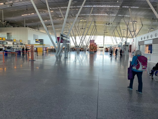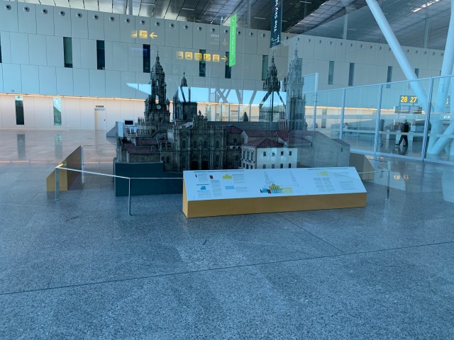 The bus stop in Santiago is adjacent to our hotel, the 40 minute trip to the airport costs a princely €3 each. We’re boarding shortly.