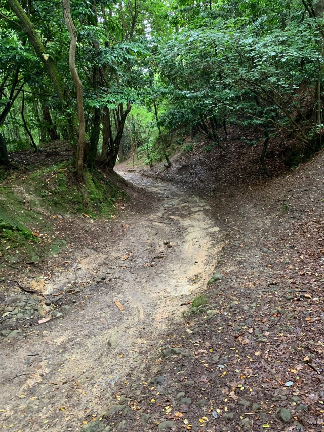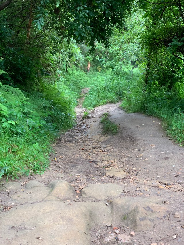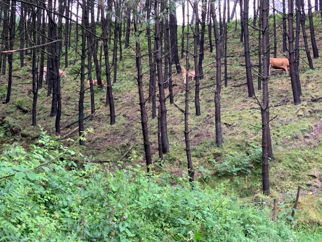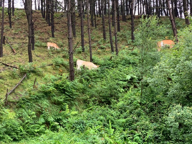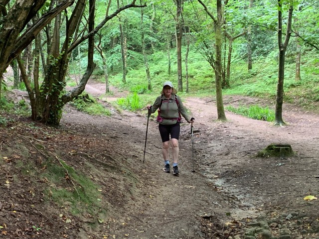 The final 4 km this morning took us quickly downhill through a dark and mysterious forest of oak and beech trees