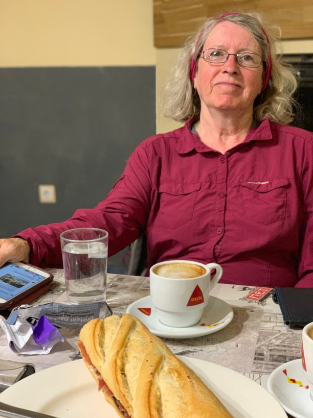 It’s 20:16 and after spaghetti puttanesca for the main course (cooked by me but with too much chilli), bread and wine, followed by melon, Tom is off to bed. Dorothy and I have a private room while Tom has elected for the somewhat less private bunk bed in one of the dormitory rooms. He’s sharing with up to 9 others and has already struck up a friendship with a Spanish chap in need of a USB-C charging cable.