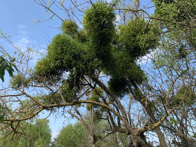 Nestled in amongst the branches on many of the trees were large clumps of mistletoe.