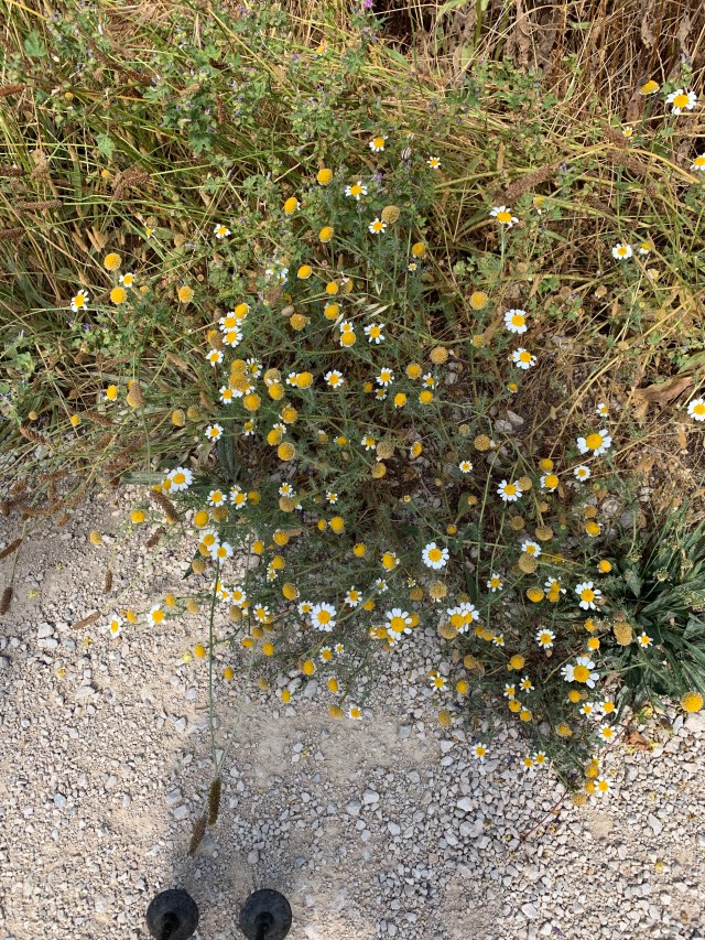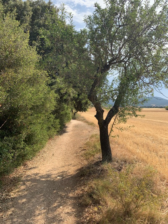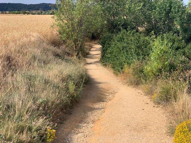 Another relatively gentle day today. Some 18.8 km covered, a small mountain ascended (and descended), lots of flowers, snails, slugs, ants and groves of almond, olive trees and vines at the beginning of the Rioja region.