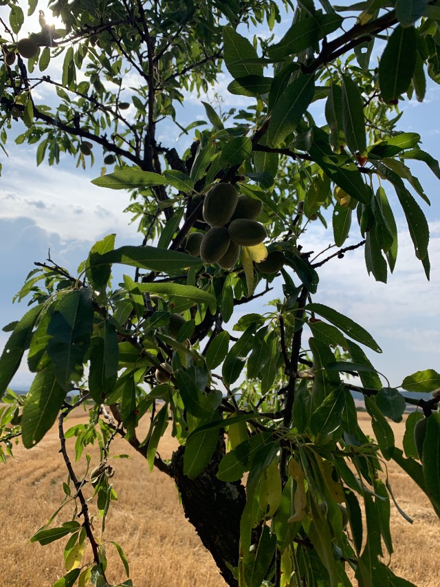 Safely down, the route to Uterga where Tom was about to be dropped off if all went plan passed through fields of what at first sight looked like olive trees but we’re in fact almonds.