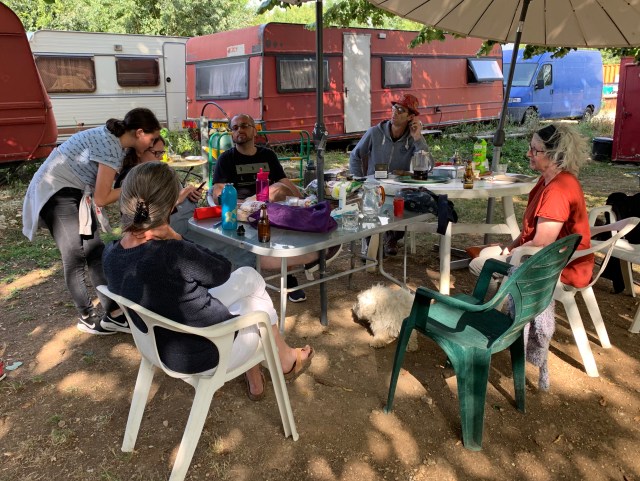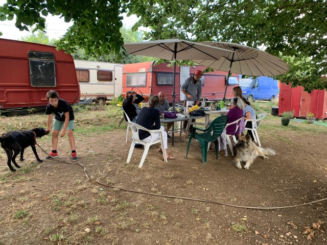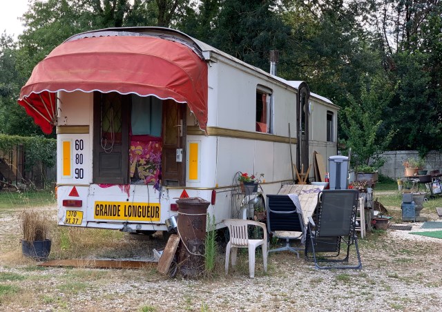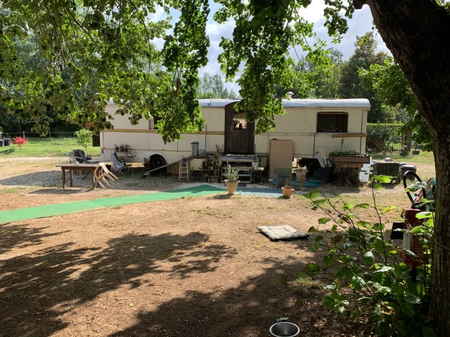 They’ve managed to acquire just under a hectare of what used to be public land which specifically prohibits buildings. So they live in an assortment of caravans in various states. It’s peaceful, secluded, has space for Gamin and Auguste and best of all has a compostable toilet. 👌.