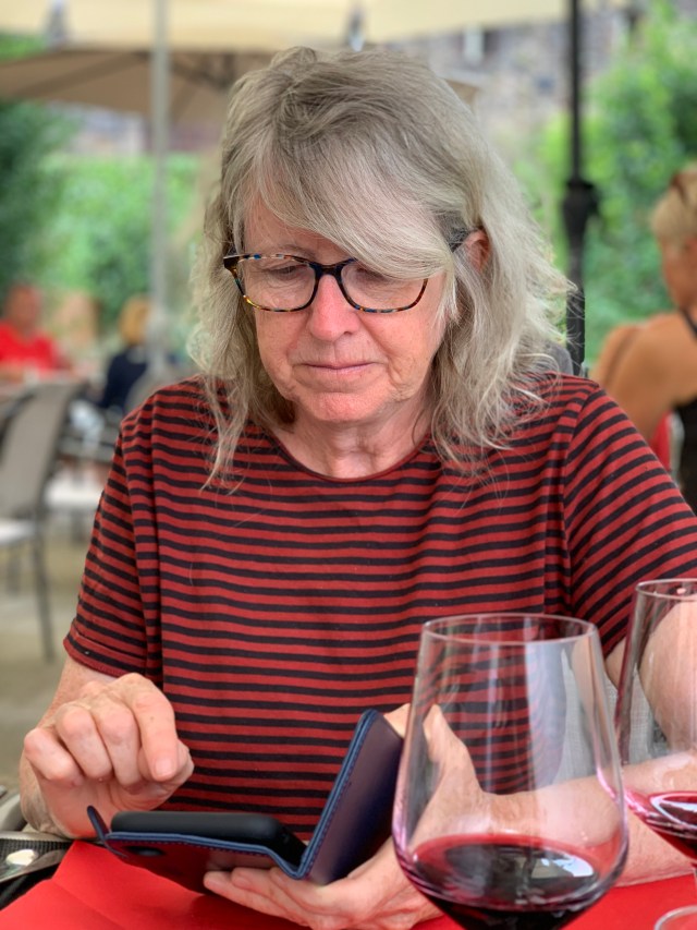 Now on to last night’s screwup. We’re in what purports to be a spa hotel in Ossac, some 14km from St. Jean. I’m underwhelmed. We arrived, got a series of frosty looks from the guy at reception who then led us to our room on the second floor, saw that Dorothy was staggering under the weight of bag and rucksack and … completely ignored her. I had my hands full and couldn’t help so poor Dorothy clambered clumsily up two floors of rickety steps. Not impressed.