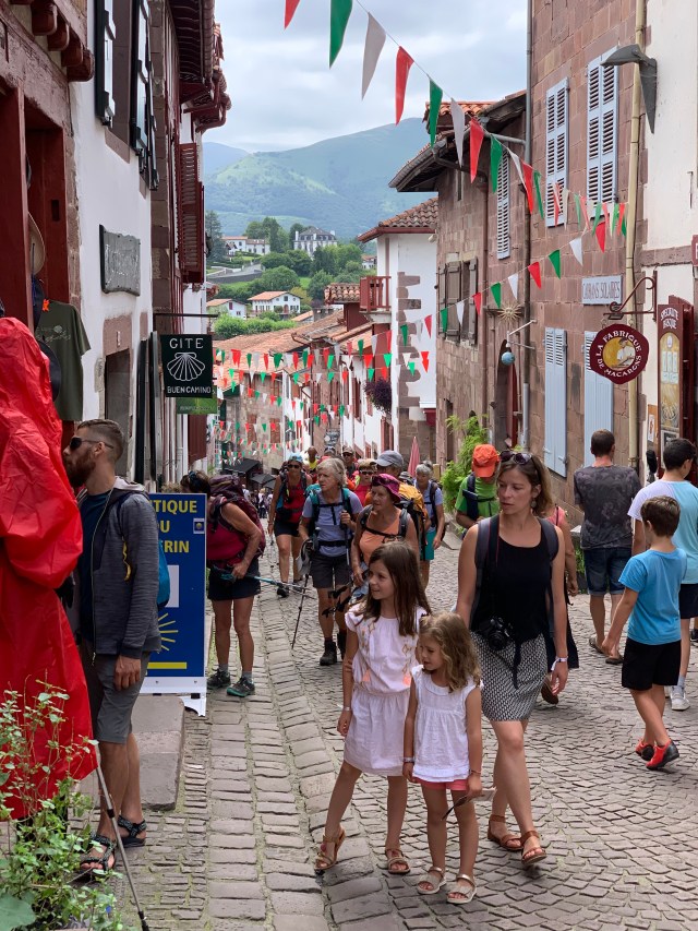 with lots of cyclists in the obligatory Lycra tops and padded shorts and new pilgrims groaning under the weight of their newly acquired backpacks and inappropriate footwear (boots when they should have been in the marshmallow heaven of Adidas supernova running shoes). St. Jean is also clearly a tourist destination and a rather attractive medieval town.