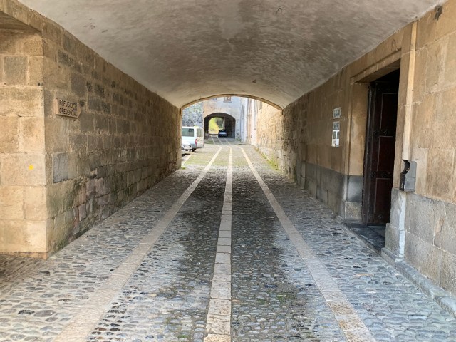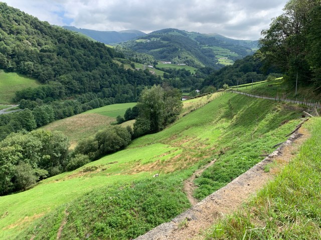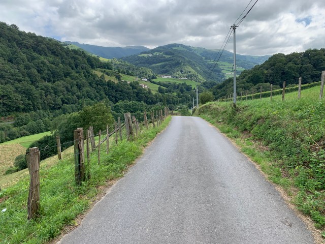The route to St. Jean via Val Carlos has perhaps 80% of the journey on the public road with 10% spent fighting one’s way through thick spiky, nettled undergrowth