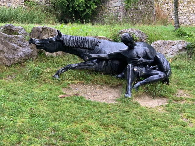 The Val Carlos route is the default route in the winter. It’s lower than the classic Napoleon route and somewhere along this route is where Roland blew his horn to little effect and was wiped out by a bunch of angry Basques who Charlemagne had apparently pissed off by unnecessarily (in the view of the Basques) sacking one of their small towns. (https://en.m.wikipedia.org/wiki/Roland). The image above is of Roland and his poor horse who, like most horses in these situations hadn’t put a hoof wrong but ended up dying alongside his master anyway.
