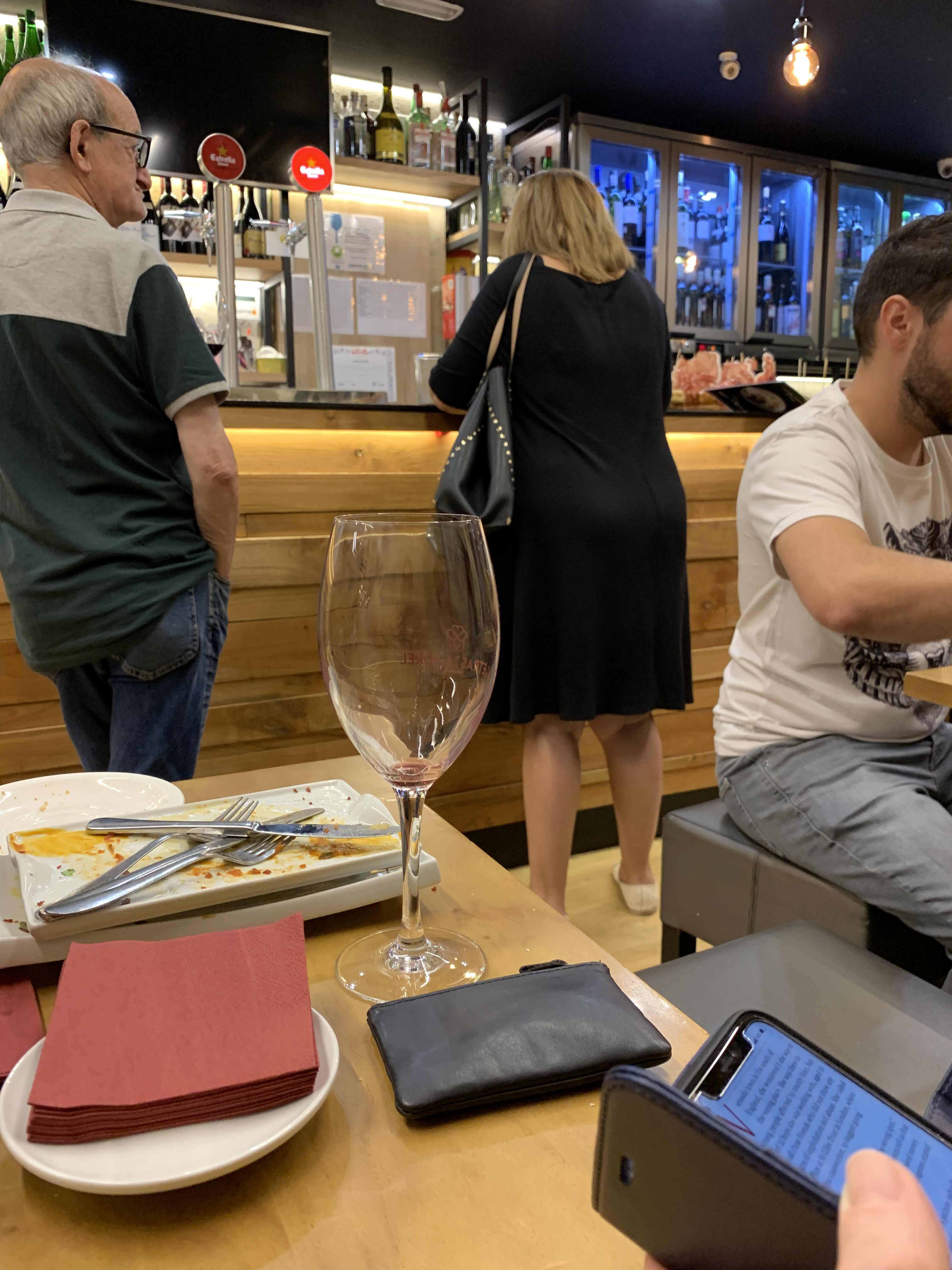 We had some raciones in one recommended place but Dorothy’s racione picking ability is severely compromised and whereas asparagus wrapped in Serrano ham is ok, a pastry of pasta with congealed cold egg is not.