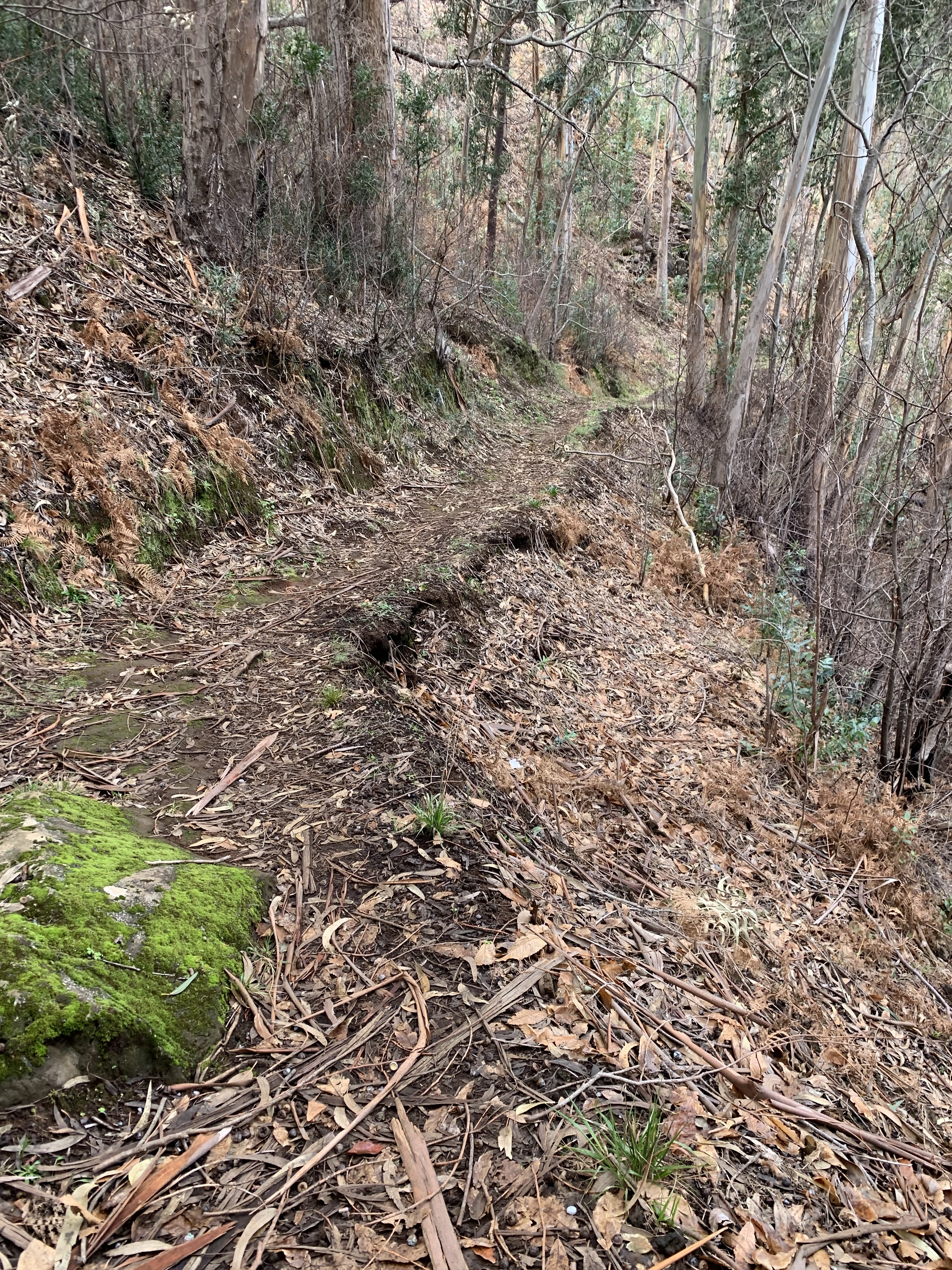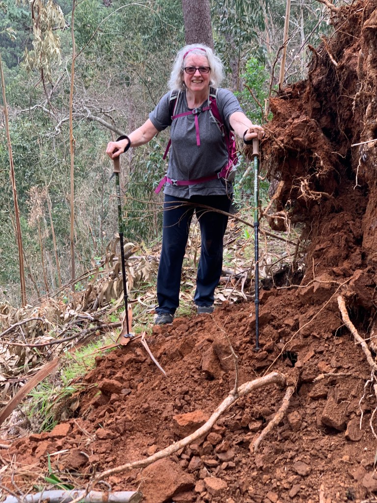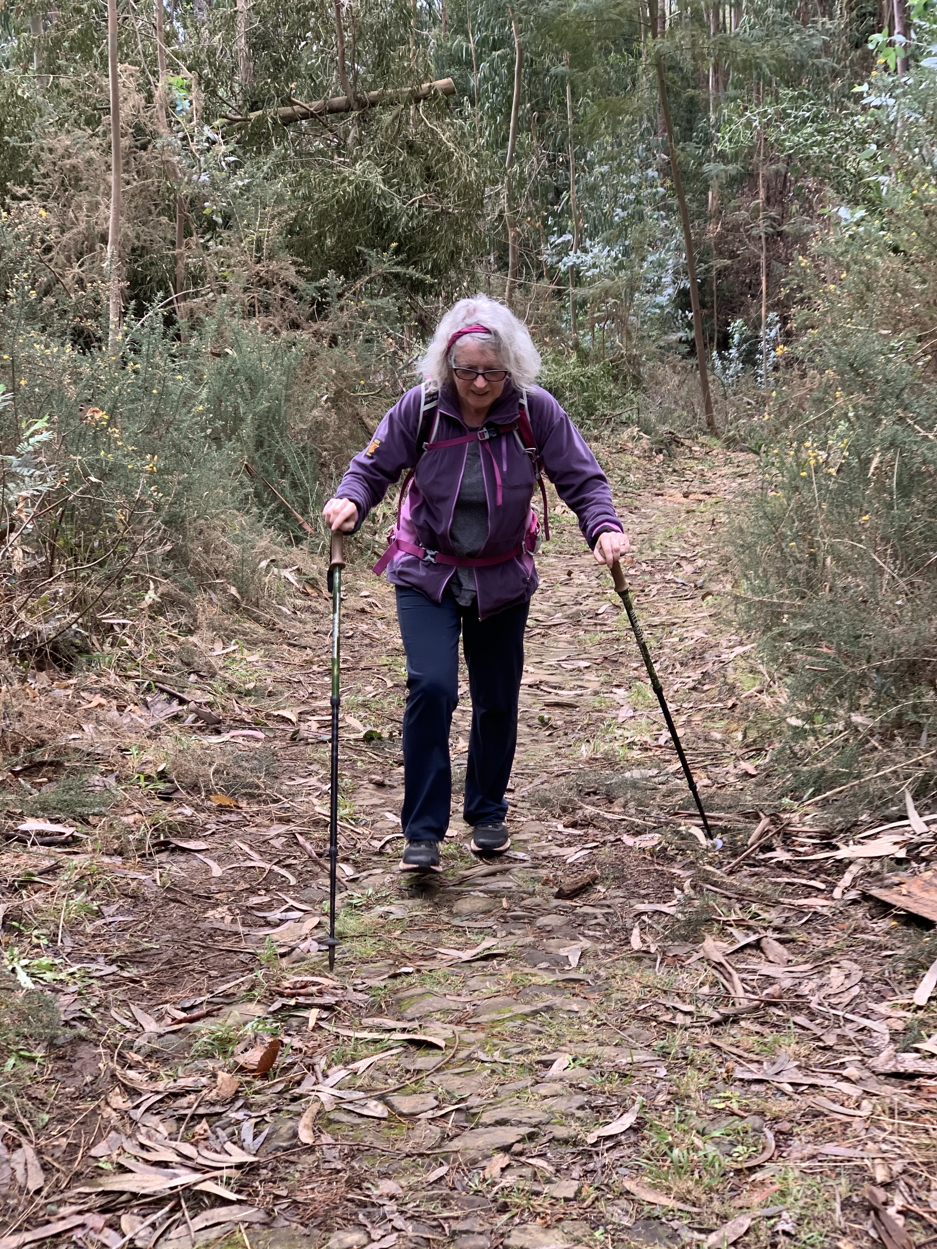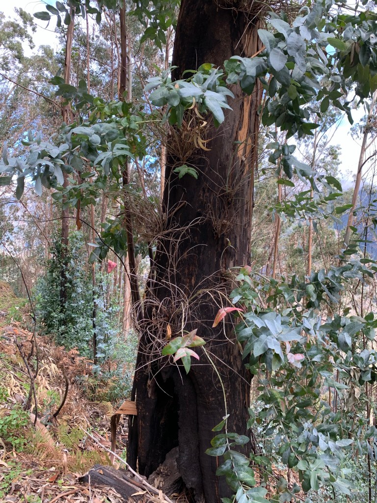 It was quite beautiful walking through the trees. Dorothy commented on the smell of the eucalyptus, one of the very rare occasions when perhaps it might be nice to have a sense of smell. There’d clearly been a fire fairly decently and many of the trunks were burned, some quite badly.