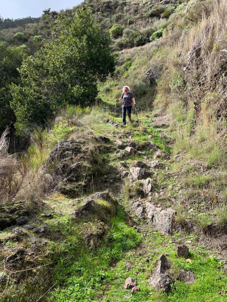 The descent into the valley was quite vertiginous and both of us were very thankful for our sticks.