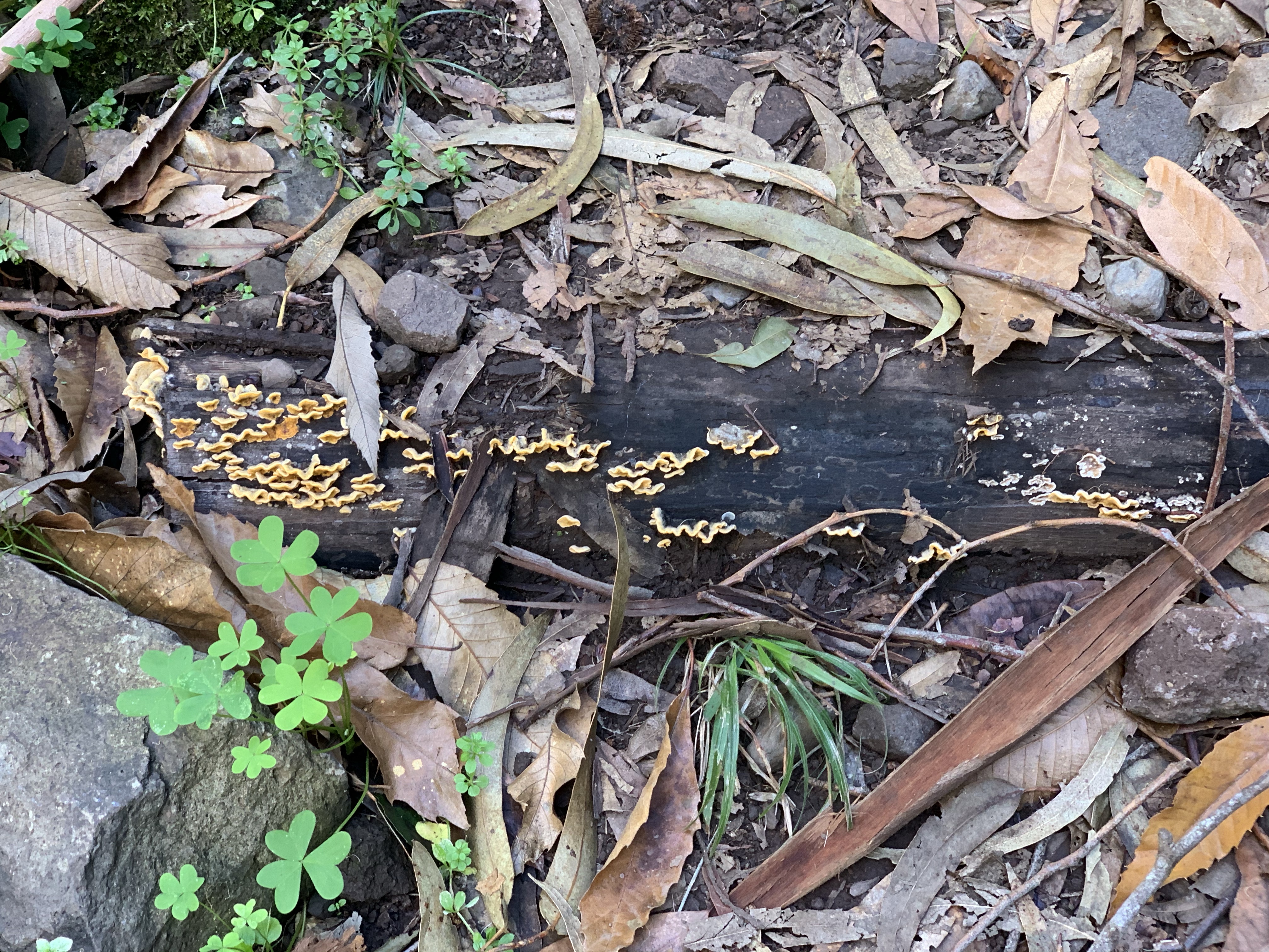 As we re entered the forest, now composed mostly of chestnut trees, the logs laid by some kind foresters were covered with fungi.