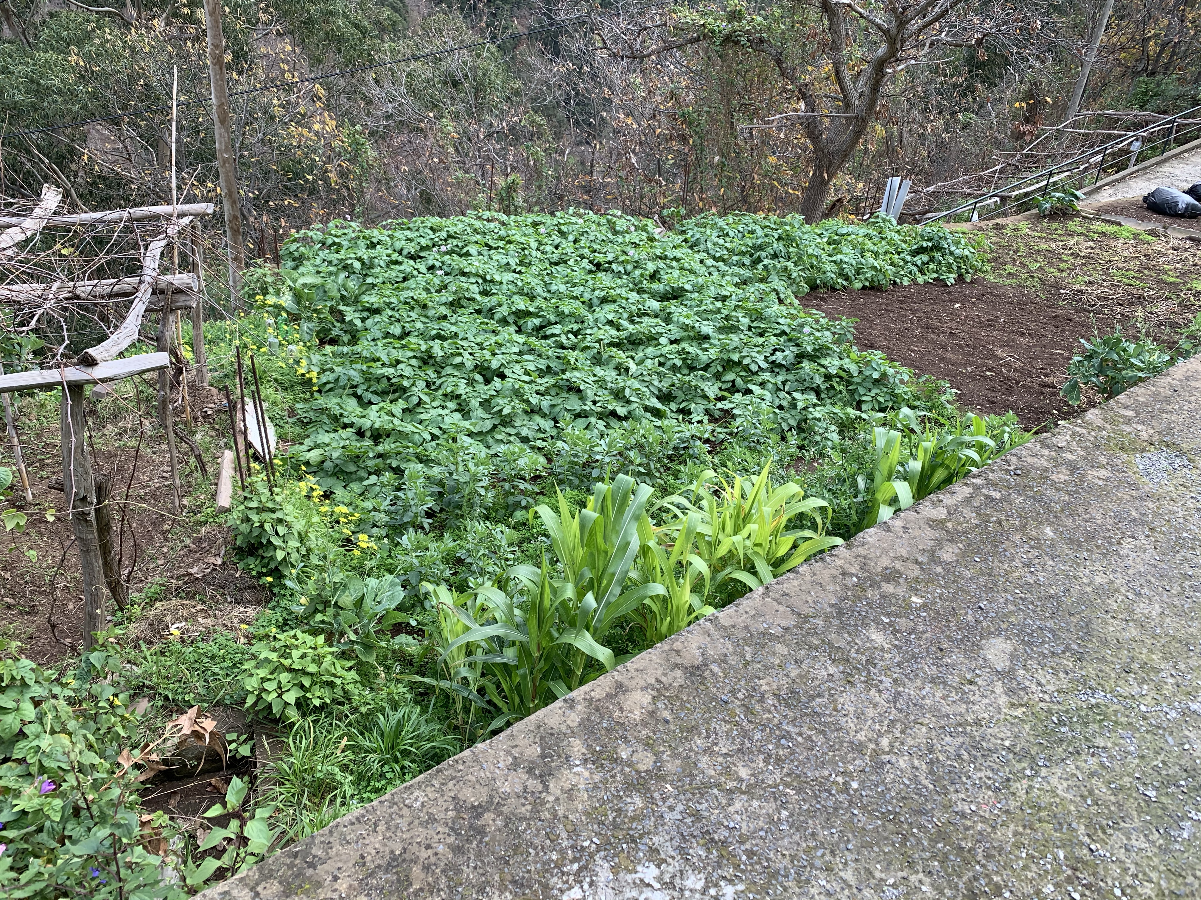 There are banana trees, squash plants and the ubiquitous Spanish broccoli everywhere with occasional areas devoted to viniculture.