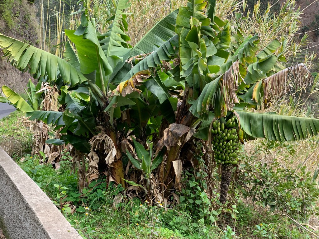 The temperature in Madeira is warm all year round and the soil is rich but relatively thin. The houses perched precariously on the mountainside are clearly not wealthy but they have a fighting chance of producing much of their food from their surroundings.