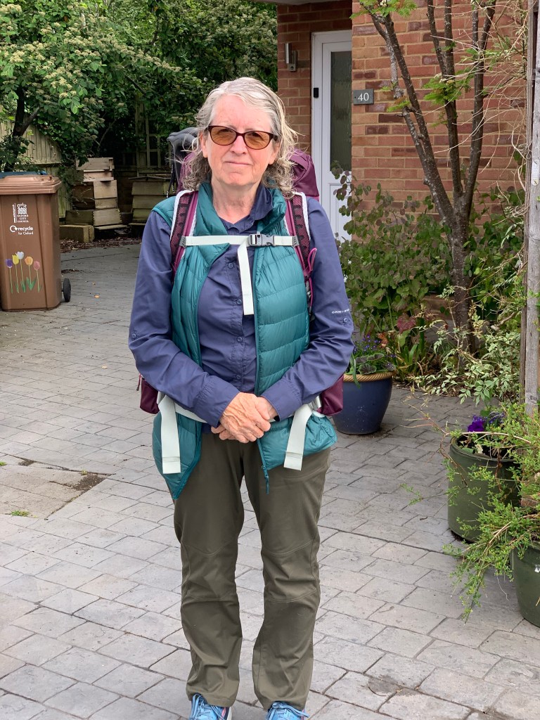 We packed yesterday, woke early, fed the dogs, had breakfast and headed out to big field. Pero behaved himself off the lead and was rewarded with so many sprats. After drying them off and assuring them that Emma and Neil would feed them at lunch time and give them lots of love and cuddles and that Menna and Andy would cuddle up on the sofa with them, we hoisted the packs onto our backs and headed off.