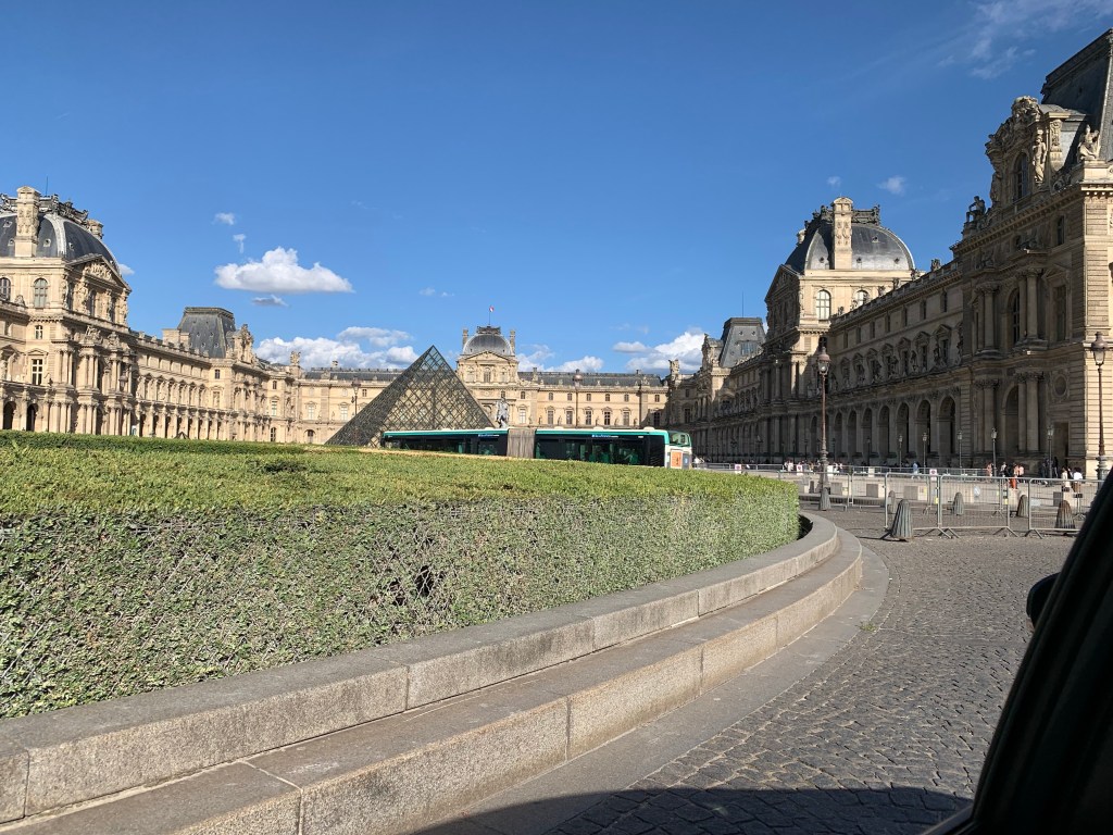 Eventually we were allocated to a taxi and we were driven off only to stop, start, stop and generally crawl towards our hotel. We passed the Louvre …