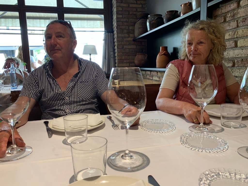The chap behind Dorothy is Oliver, a Belgium chap, married to a Russian lady who he met on his 11th Camino having left politics and his post as teacher of philosophy under a cloud of depression with the state of the world in general and political backstabbers in particular. They had bought this small bar/supermarket and were happy quietly serving coffee and breakfasts to hungry pilgrims. Apparently Miguel Indurain lives just down the road and is often seen cycling past with friends. Oliver was a fountain of knowledge of all things Camino and gave us pointers to restaurants, bars and hostelries all along the way. We had intended this to be a short refuelling stop but stayed the best part of an hour chatting.