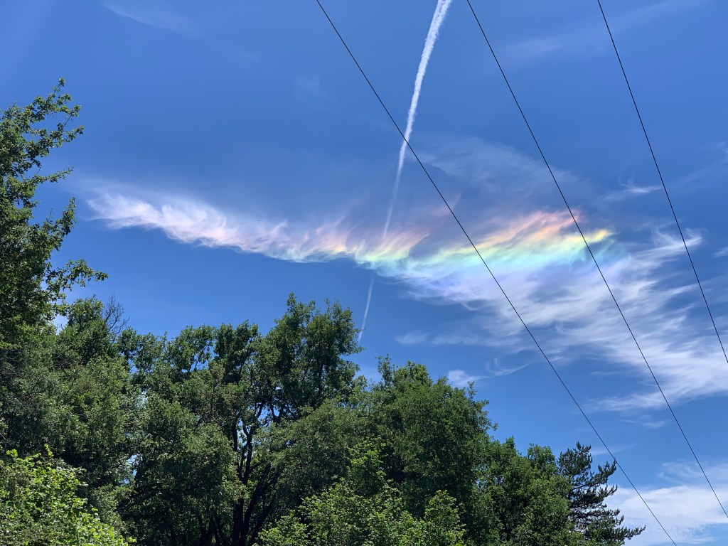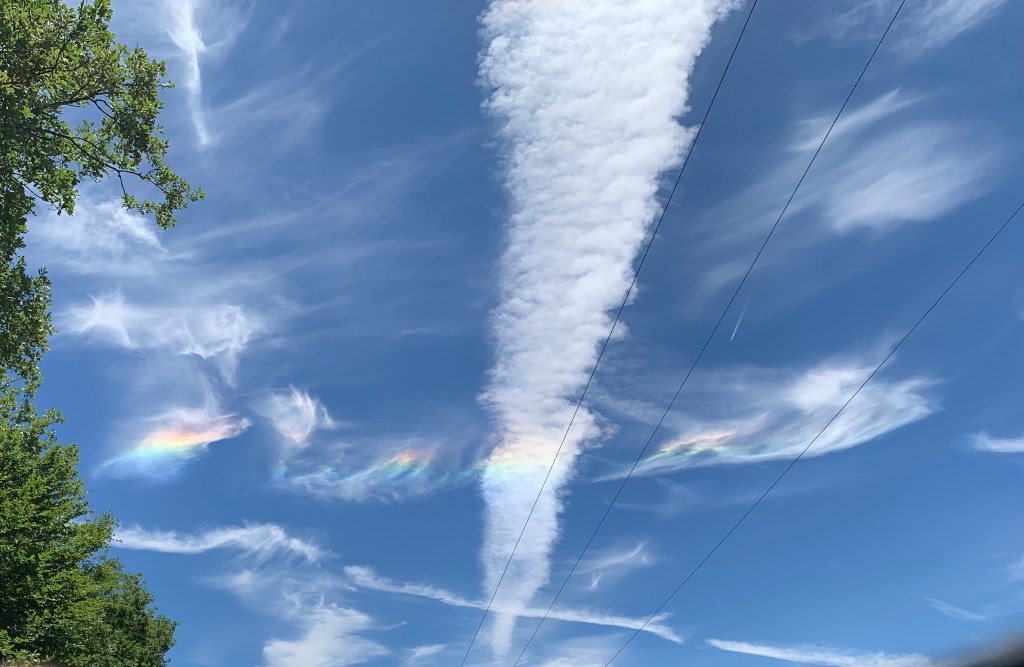 The colours spread slowly across the whole of the central region of clouds that we could see. It was the most astonishing display. Take a look at https://en.m.wikipedia.org/wiki/Cloud_iridescence for an explanation.