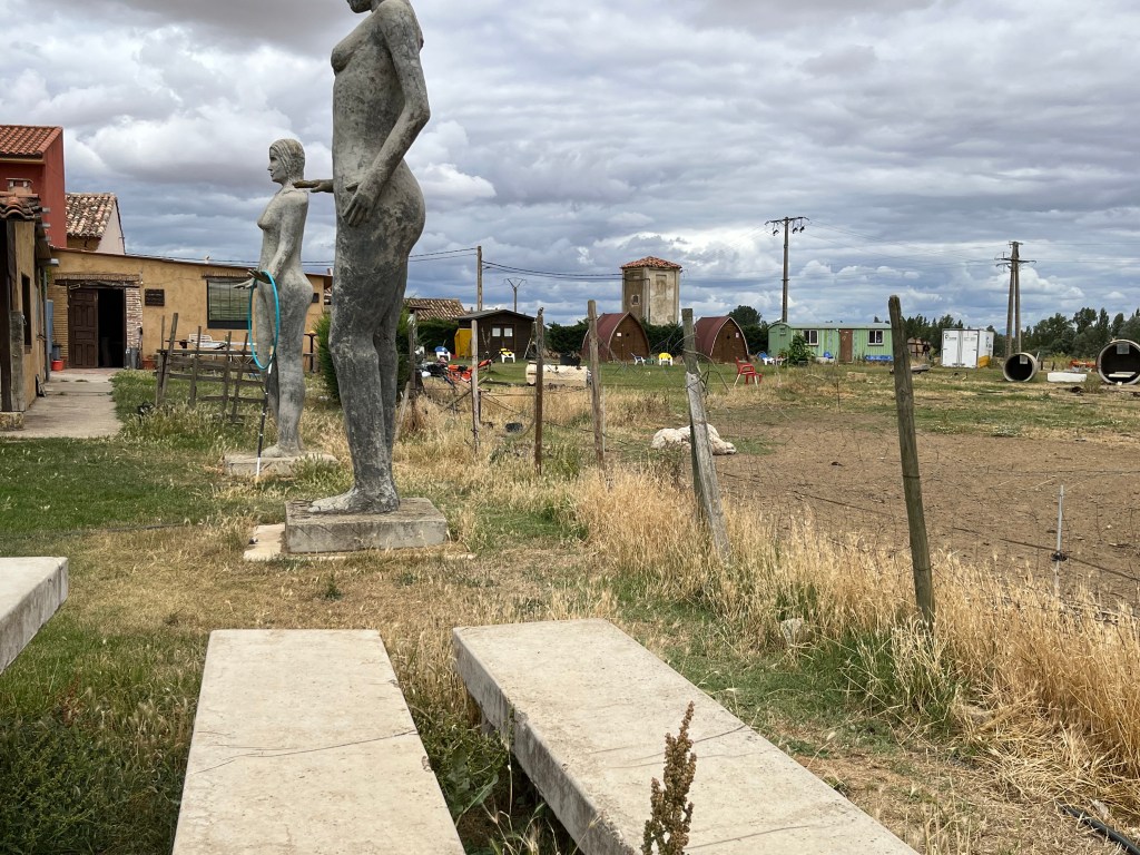 Apparently peregrinos sleep in the wooden structures in the centre of the picture and also in the construction pipe on the far right – odd but true.