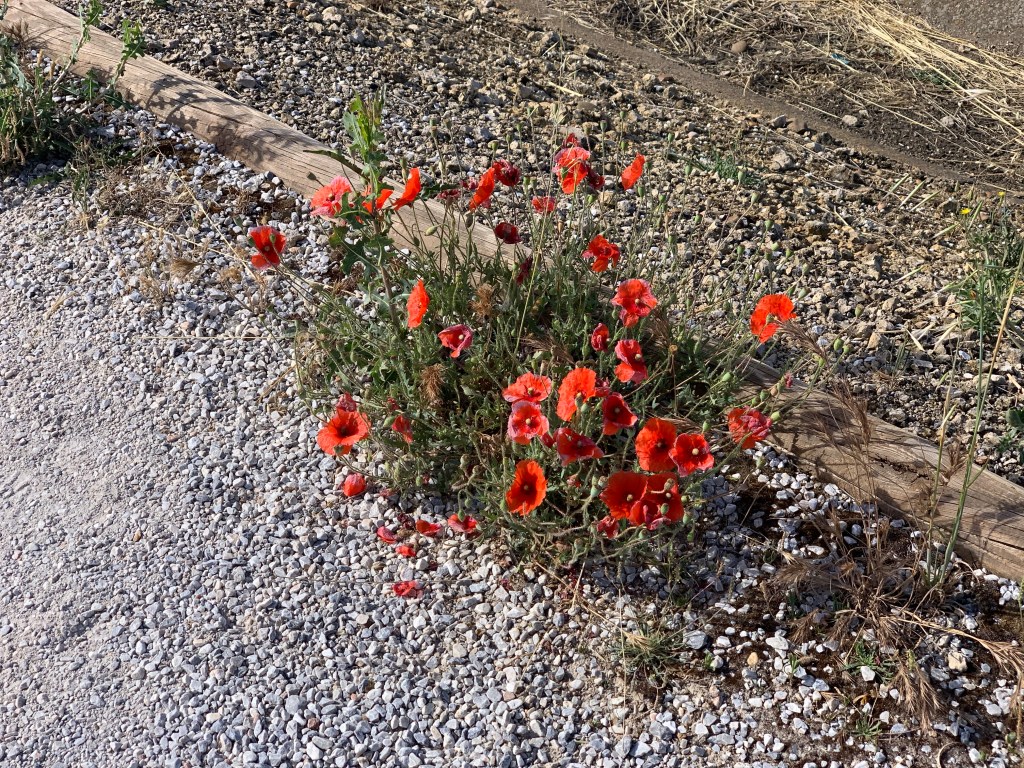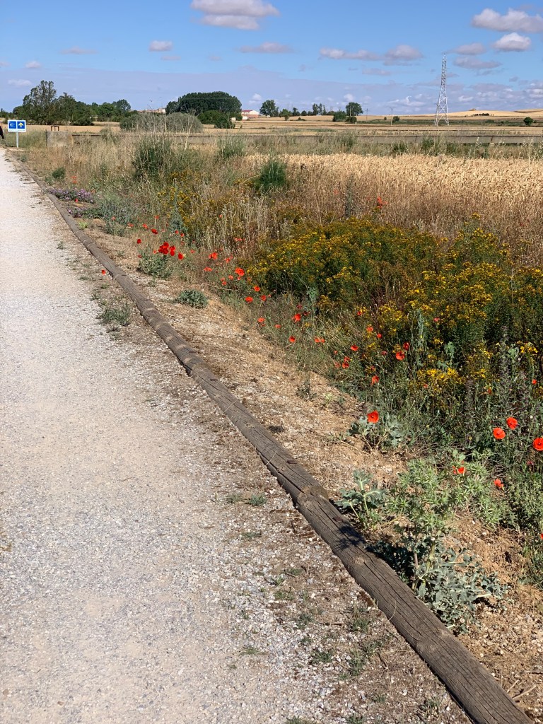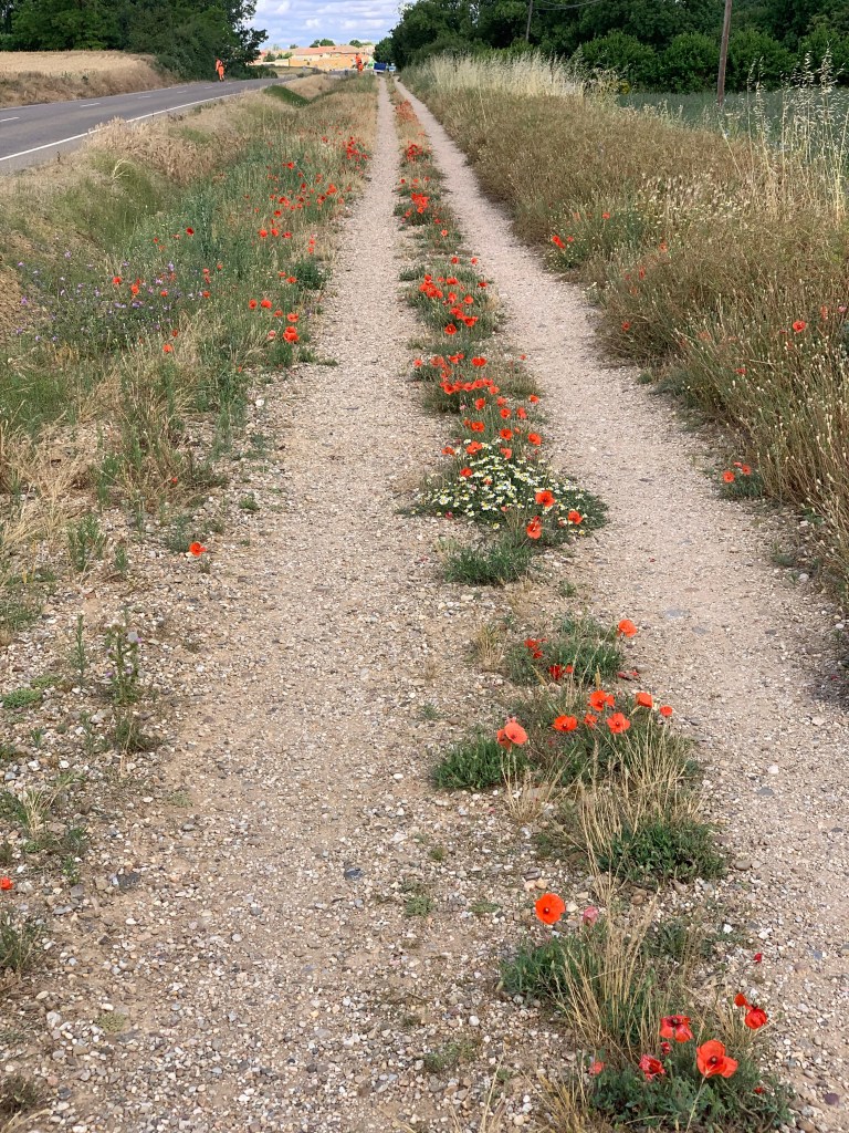We left Fromista, were offered an alternative path through fields and forests but Dorothy chose to take the default route alongside the road 😞 for 19km, but I did get to take some photos of poppies 😊.