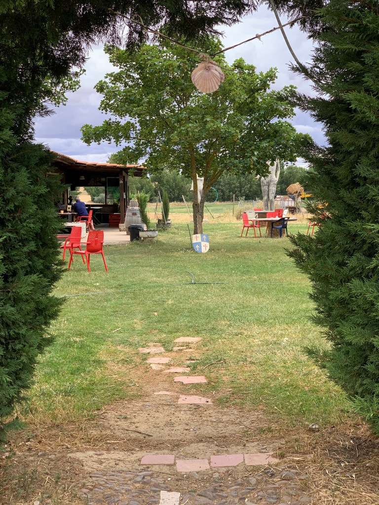 We passed through here six years ago. It’s a crazy sort of place. Music today was Gregorian chant, six years ago it was Hildegard of Bingen. We found Joachim nesting in a hammock. Just leaving was the defeated Frenchman from yesterday who gamely doffed his virtual cap accompanied by a gentle ‘bien Camino’ as he left.