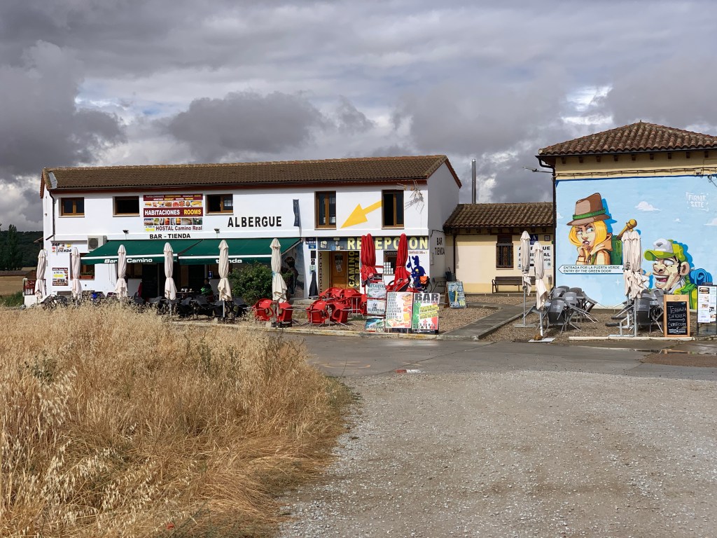 We stopped here last time we walked this way. My vitreous humour had detached a few hours earlier and I was left with an enormous floater in my right eye and concern that my retina had detached. Thankfully the hospital in León were able to determine the correct cause and I was able to relax. In the meantime we’d had to enjoy the food and general ambience of the worst albergue on the Camino. Today we stopped for coffee in the bar opposite before continuing.