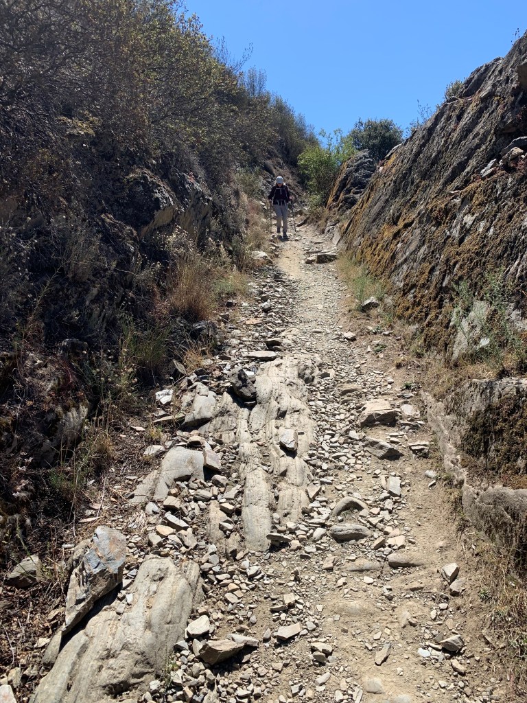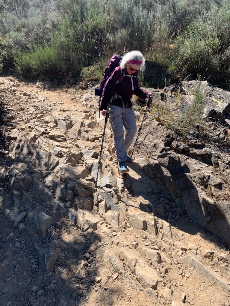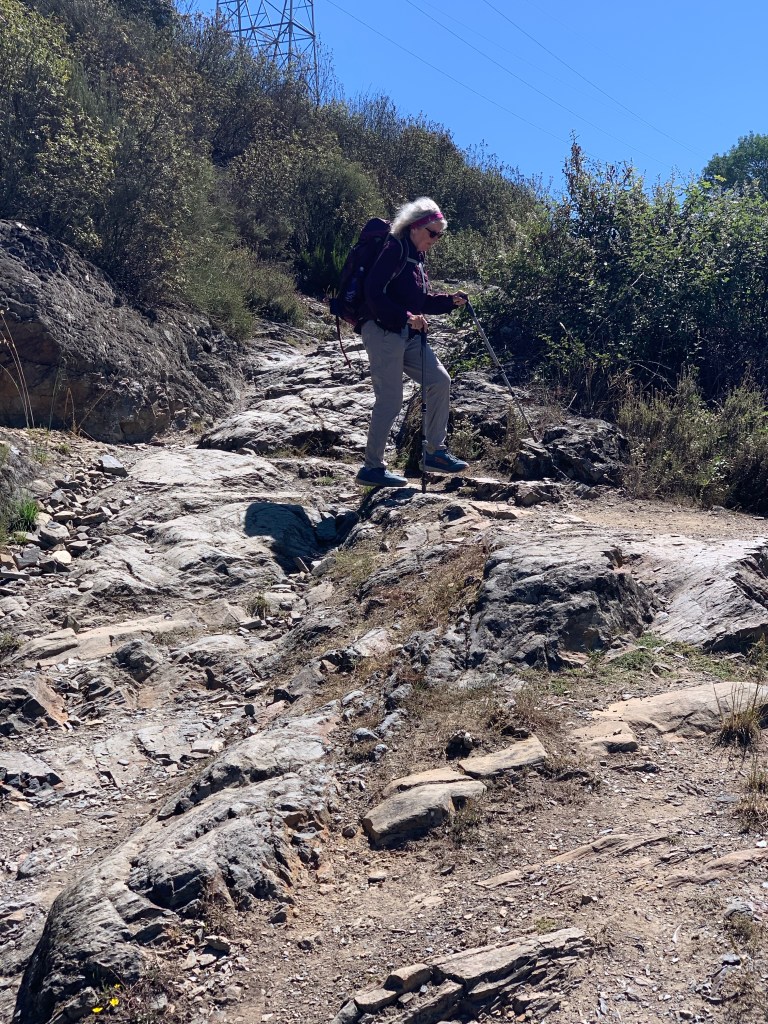 The steepness of the descent was surprising and extremely taxing on the knees, hips and ankle joints. Quite a number of people that we’ve met on this walk have been our age or older but more frail, less fit. It’s so easy to break an ankle, a leg or worse, a hip on this sort of steep terrain. Both of us were quite fed up of the constant jarring which continued for at least the next 7km to Molinaseca, a small town 8km from Ponferrada.