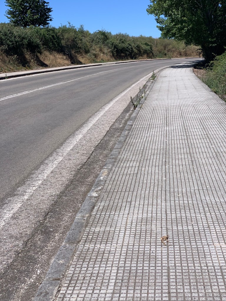 We stopped for a bocadillo and some agua con gas. On the table next to us was a much younger french lady who was clearly in some distress. It seemed that she’d fallen badly at some point and was being whisked off to hospital in a taxi to get herself checked out. I doubt that she’ll be the last they see today.