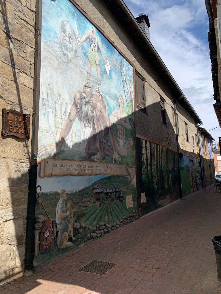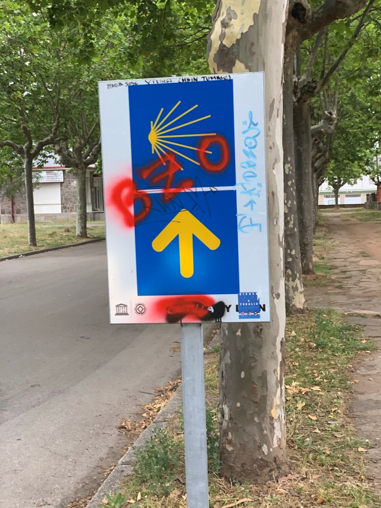 As we approached Villafranca, Dorothy’s hip started playing up, plenty of pain, no clicking but still, not good. This happened a couple of days ago so we transferred the heavy stuff out of Dorothy’s bag and into mine. Yesterday was tough; today was much easier but a 10+ kg is much tougher on the feet which meant that when an ALSA bus pulled up alongside us 4km from our destination we decided unanimously to jump on.