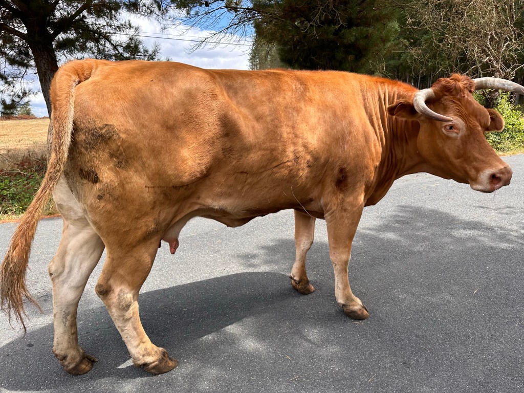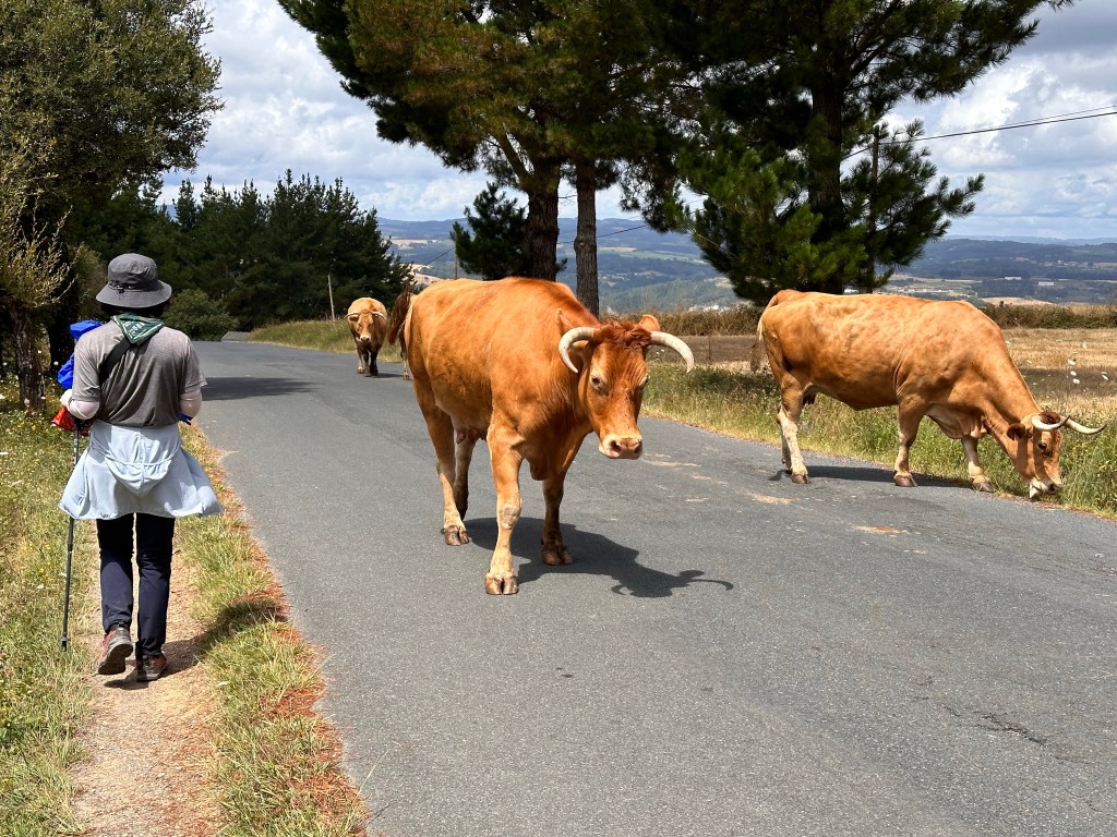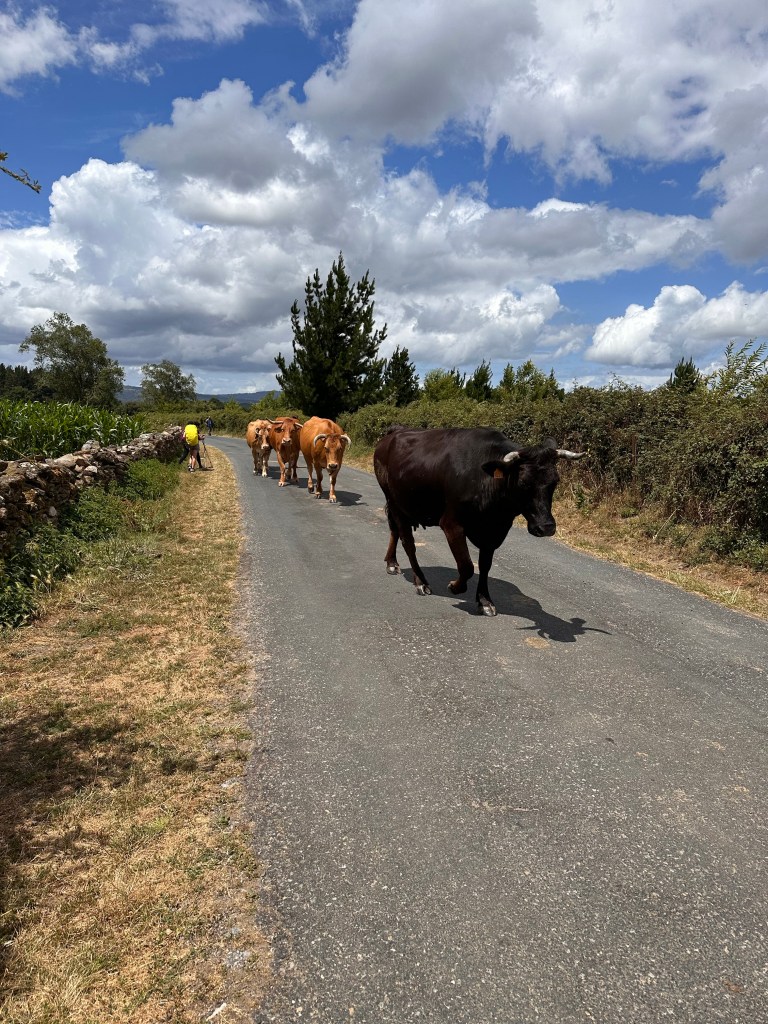 The final few kilometres to Portmarin was punctuated by rather large and quite beautiful cows on the road invariably accompanied by a dog, usually an Alsatian and a grizzled elderly cow herder.