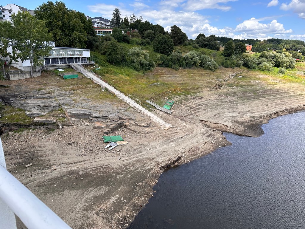 Portomarin was a small village in the 1960s which was drowned on the orders of Franco to create a reservoir. The church and a couple of other important buildings were dismantled stone by stone and rebuilt in the newly cleared forest on the hillside where a new town was constructed. There’s a long bridge across the reservoir which we needed to traverse to get to Portomarin.