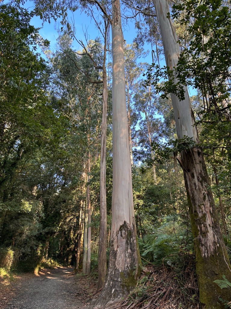 Today’s route was through a mixture of woodland paths and small villages. The woodlands are mostly composed of a small number of oak and ash with some pine and small ‘plantations’ of eucalyptus trees.