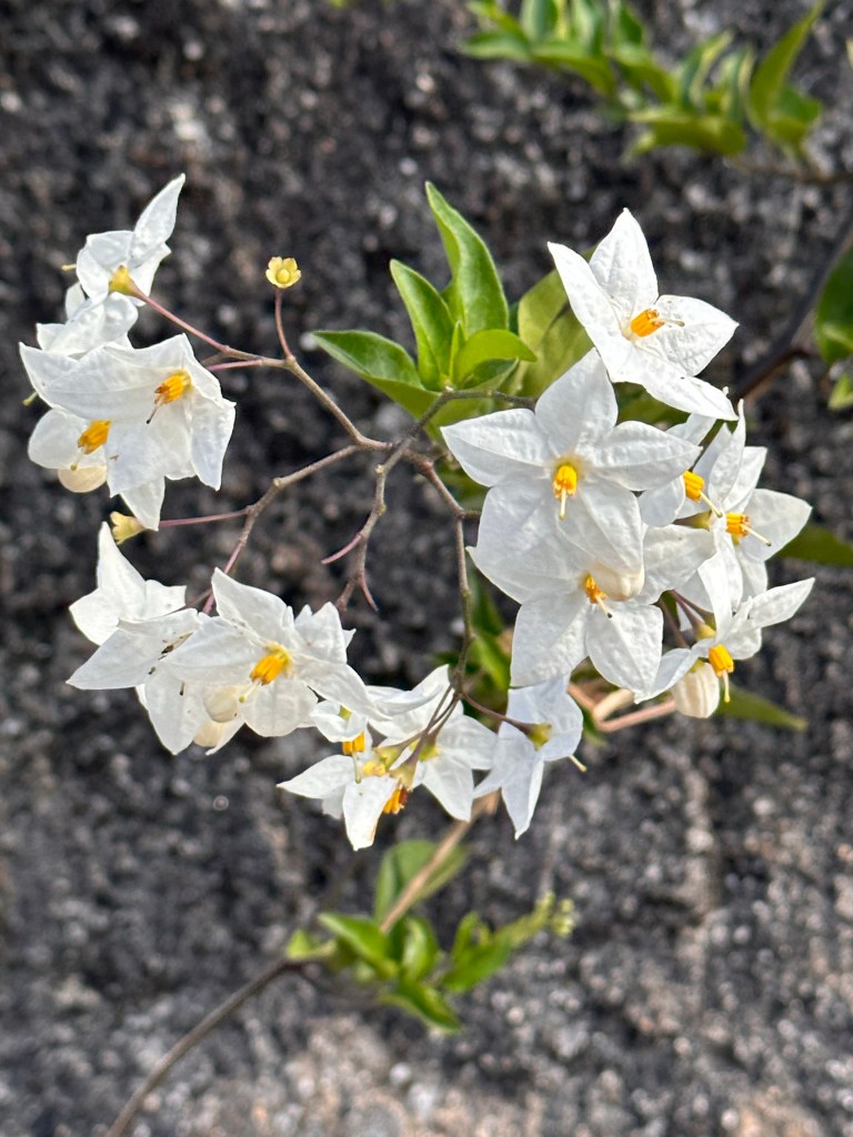 So close to a major conurbation there is far less diversity in plant and animal species, no butterflies or animals apart from dogs, mostly Alsatian and invariably employed as guard dogs. There are the occasional displays of some wonderful flowers.