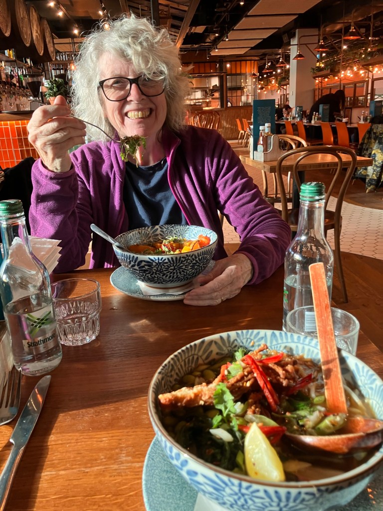 The two vegan options were excellent though Dorothy’s squash and bean bowl proved a little heavy going. My enoki mushrooms and kimchi ramen was excellent. Having successfully grown grey oyster mushrooms